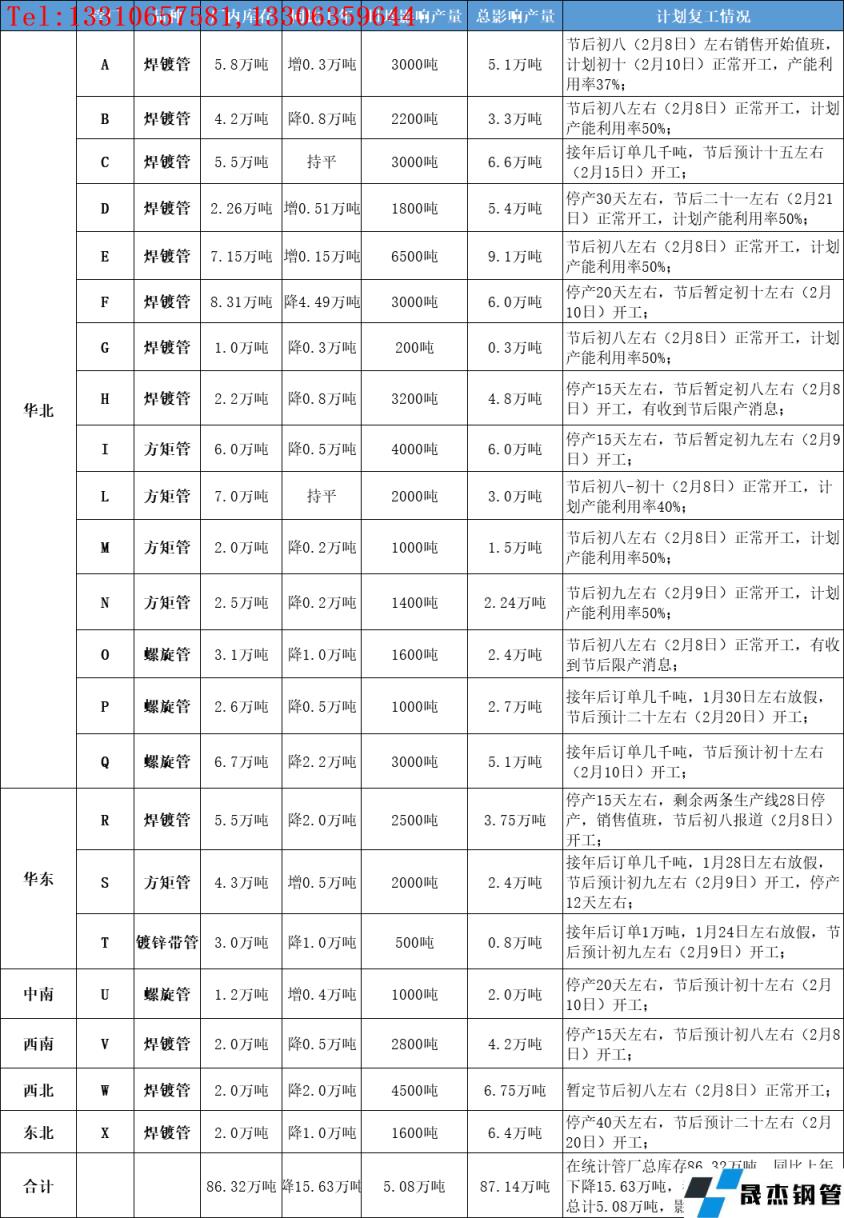 引言:1月上旬焊接91视频在免费线观看无缝钢管厂前期利润尚可,产能利用率一度回升至70%左右,中下旬随冬储操作陆续收尾,管厂随之步入停产、放假阶段。网对全国焊接91视频在免费线观看无缝钢管厂库存、产量及春节后复工情况进行调研。