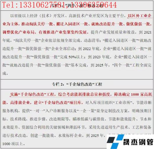 实施“千企绿色改造”工程,聚焦钢铁、建材等重点行业。坚决遏制“两高”项目盲目发展,全面梳理排查拟建、在建和存量“两高”项目,对“两高”项目实行清单管理、分类处置、动态监控,对拟建“两高”项目,严把准入关,严格执行钢铁、焦化、铸造等高耗能行业产能置换相关政策,严控“两高”项目新增产能;对在建“两高”项目,能效水平低于本行业能耗限额准入值的,按有关规定停工整改,力争达到标杆水平;对存量“两高”项目,严格执行环保、质量、技术、能耗、安全等有关法律法规、标准和产业政策,坚决淘汰落后生产工艺、技术、装备,加快淘汰落后产能。