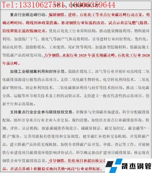 制定工业领域碳达峰实施方案和钢铁、建材、石化化工等重点行业碳达峰行动方案,推动煤炭等化石能源清洁高效利用,提高可再生能源应用比重,有序推进钢铁、建材等行业碳达峰工作。加快低碳技术开发,围绕钢铁、化工等重点行业,推动化石能源清洁高效利用等低碳技术,开发一批前瞻性、战略性、颠覆性技术。到2025年,推广50项绿色低碳先进适用技术。加快工业互联网、5G等新一代信息技术在绿色制造领域的应用,到2025年,规模以上制造业企业关键业务环节全面数字化比例超过50%,钢铁、水泥(熟料)等行业重点企业能源管理平台创建率达到100%。