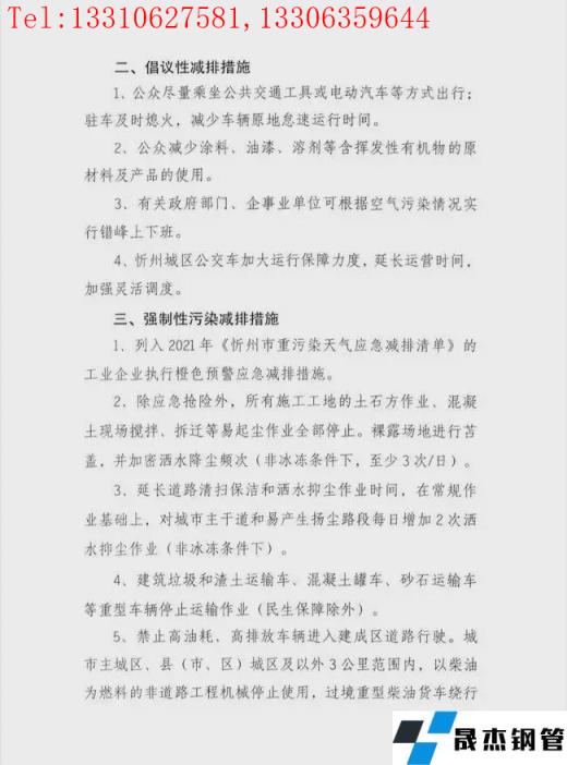 1、列入2021年《忻州市重污染天气应急减排清单》的工业企业执行橙色预警应急减排措施。2、除应急抢险外,所有施工工地的土石方作业、混凝土现场搅拌、拆迁等易起尘作业全部停止。3、建筑垃圾和渣土运输车、混凝土罐车、砂石运输车等重型车辆停止运输作业(民生保障除外)。