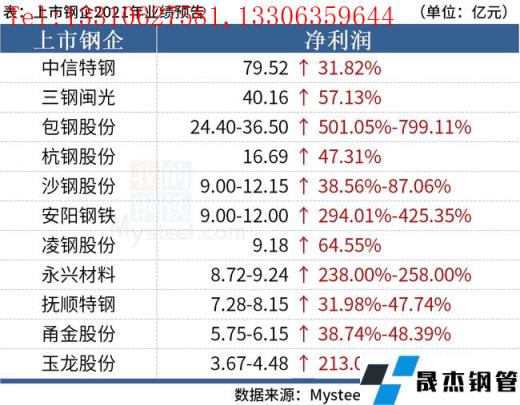 免责声明:本网站(山东聊城91视频官网下载无缝钢管厂www.hujuzx.com)刊载的“2021年钢企利润创新高,中信特钢实现净利近80亿”等均源于网络,版权归原作者所有,且仅代表原作者观点,本文所载信息仅供参考。转载仅为学习与交流之目的,如无意中侵犯您的合法权益,请及时联系删除。本网站刊登此篇文章并不意味着本站赞同其观点或证实其内容的真实性,91视频官网下载不对其科学性、严肃性等作任何形式的保证。如果侵犯了您的版权,请尽快联系91视频官网下载予以撤销,谢谢合作!