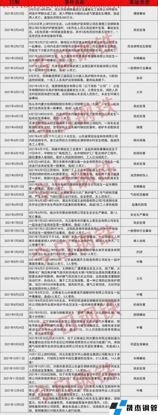 回顾整个2021年,钢铁冶金行业的生产安全一直是备受关注的话题,整年可以用一句话概括:安全事故频发,血的教训!2021年已结束,但安全工作没有结束,发生的一起起事故仍然历历在目,血的教训不能再用血来验证,生命的代价不能再用生命来支付。站在2022阴历新年的开端,回顾这些惨痛的事故是想以此为警醒,提醒大家重视安全生产,共筑安全防线!