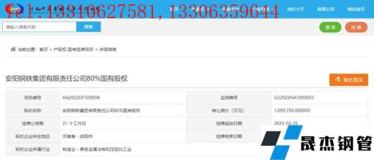 免责声明:本网站(山东聊城91视频官网下载无缝钢管厂www.hujuzx.com)刊载的“混改倒计时!安钢集团110亿挂牌转让!二十余钢企有接手资格?”等均源于网络,版权归原作者所有,且仅代表原作者观点,本文所载信息仅供参考。转载仅为学习与交流之目的,如无意中侵犯您的合法权益,请及时联系删除。本网站刊登此篇文章并不意味着本站赞同其观点或证实其内容的真实性,91视频官网下载不对其科学性、严肃性等作任何形式的保证。如果侵犯了您的版权,请尽快联系91视频官网下载予以撤销,谢谢合作!