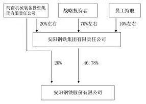 根据早前安钢集团混改方案:先将安钢集团100%股权评估后作价,出资至河南省国资委全资的河南机械装备投资集团,同时将安阳钢铁20%股权无偿划转到河南装投集团;而后依托河南装投集团在产权交易所公开挂牌并采取综合评标方式确定一名战略投资者,转让安钢集团80%股权;战略投资者对安钢集团进行增资扩股,并实施员工持股等中长期激励。