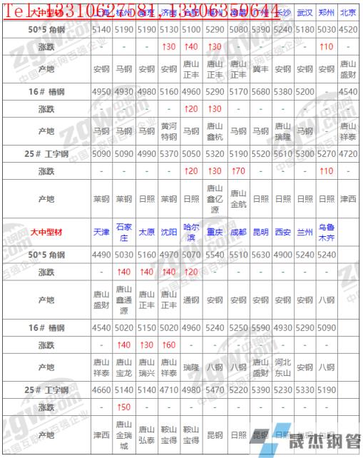 全国23个主要市场50*5 角钢平均价格5142元/吨,较上个交易日上调11元/吨。