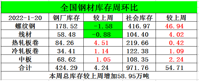 库存较上周增加58.95万吨