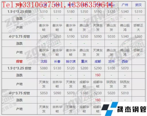 全国15个主要市场4寸*3.75 焊管平均价格5157元/吨,较上个交易日上调4元/吨。