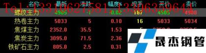 今日螺纹主力期货跌1,收报4905,跌幅0.02%;热卷主力涨5,收报5033,涨幅0.1%;焦煤主力涨35.5,收报2352,涨幅1.53%;焦炭主力涨71.5,收报3095,涨幅2.36%;铁矿石主力涨2.5,收报805,涨幅0.31%。