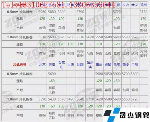 全国12个主要市场0.5mm 冷轧板卷平均价格5824元/吨,较上个交易日下调29元/吨。