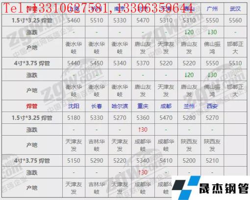 全国15个主要市场4寸*3.75 焊管平均价格5328元/吨,较上个交易日下调1元/吨。