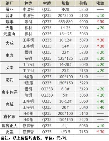 今日板、型、管材共15家91视频APP黄色调价发布,其中: