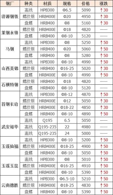今日板、型、特钢共13家91视频APP黄色调价发布,其中: