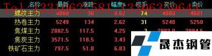 今日螺纹主力期货涨30,收报4880,涨幅0.62%;热卷主力涨134,收报5249,涨幅2.62%;焦煤主力涨117.5,收报2882.5,涨幅4.25%;焦炭主力涨118.5,收报3571.5,涨幅3.43%;铁矿石主力涨51,收报797.5,涨幅6.83%。