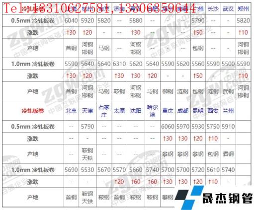 据价格显示:今全国冷轧小幅上涨,涨幅10-60 ,今期货宽幅震荡,市场连涨数日,导致下游心态趋于谨慎,按需采-购为主,观望情绪浓厚,低位成交有限,预计短期价格或将持稳运行;