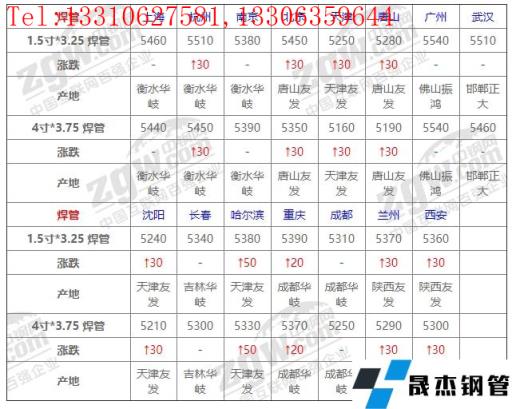 全国15个主要市场1.5寸*3.25 焊管平均价格5385元/吨,较上个交易日上调19元/吨。