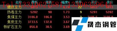 今日螺纹主力期货涨37,收报5013,涨幅0.74%;热卷主力涨90,收报5282,涨幅1.73%;焦煤主力涨106,收报3106,涨3.53%;焦炭主力涨132,收报3733.5,涨幅3.67%;铁矿石主力涨30.5,收报856,涨幅3.69%。