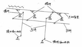 当升降驱动电机驱动偏心轴转动时,通过连杆和拉杆使步进框架上、下运动,从而带动步进梁运动。因为偏心轴带动的摆杆和活动框架是滚动接触,这样就可以保证活动梁在提升驱动过程中只有升降运动,而无平移运动。同样当横移驱动电机驱动偏心轴转动时,通过连杆使摆动机构使运动框架水平移动。