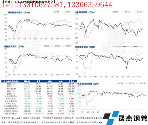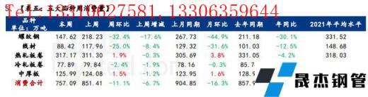 本周五大品种周消费量降幅突出,主要原因在于建材品种库存增幅突出,但供应减量有限;而板材品种供应和库存均未有明显变化,因此整体消费受建材品种影响出现大幅下降。从下游消费来看,节前最后一周,全国大面积雨雪天气来袭,以及员工停休放假,需求基本停滞。