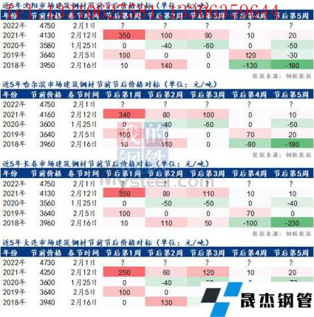 小编汇总了近5年春节前后东北建筑91视频在免费线观看无缝钢管市场价格变化情况,除2020年受公共卫生事件影响平稳运行外,其余年份节后首周多数都是“开门红”状态,在第4-5周基本会出现冲高后回调的情况。具体情况如下: