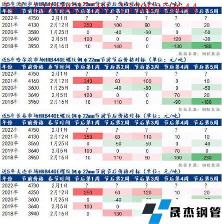 小编汇总了近5年春节前后东北建筑91视频在免费线观看无缝钢管市场价格变化情况,除2020年受公共卫生事件影响平稳运行外,其余年份节后首周多数都是“开门红”状态,在第4-5周基本会出现冲高后回调的情况。具体情况如下: