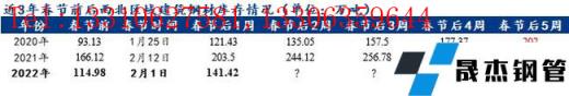 对比近3年春节前后西北区域社库数据来看,今年春节前累库不及往年。2021年是近3年以来,西北区域春节前社库量最多一年,社库量达166.12万吨,而今年春节前西北区域社库量在114.98万吨,较去年减少51.14万吨。再对比春节后社库量来看,西北区域需求多集中在2月底或3月中上旬释放,叠加春节假期影响市场销售周期,因此往年春节后西北区域建材社库基本上处于快速累积,春节后第一周建材社库平均增幅在25%左右。从趋势来看,预计春节后第四周或第五周将达到全年社库峰值。