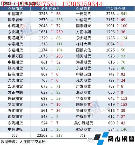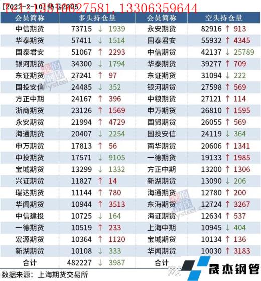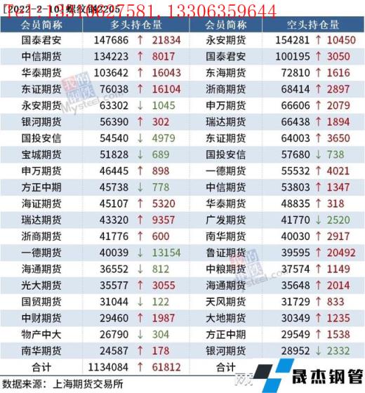 截至2月10日收盘,螺纹钢2205收4955元/吨,涨1.52%;热卷2205收5069元/吨,涨0.72%;铁矿石2205收821.5元/吨,涨3.2%。