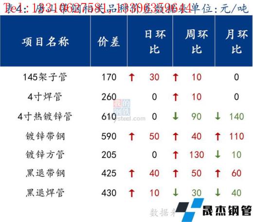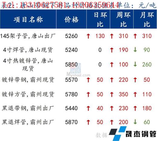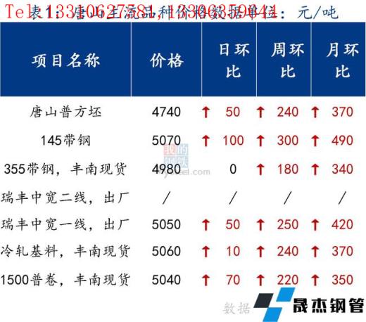 145带钢出厂5070元/吨,较昨日涨100元/吨。355带钢市场现货价格4980元/吨,较昨日持平。焊管价格5240元/吨,镀锌管价格5850元/吨,较昨日持平。