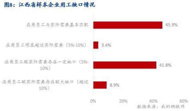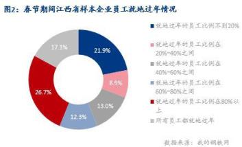 据调研,春节期间江西省样本企业所有员工都放假停工的企业占调研样本比例为52.7%,放假停工的员工比例不到20%的企业仅占比5.5%;放假停工的员工比例在60%以上的企业样本占比达到89%。