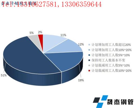12、样本企业计划用工情况:计划增加用工人数超过20%的企业占比11.24%;计划增加用工人数10%~20%的企业占比12.36%;计划增加用工人数5%~10%的企业占比19.10%;保持用工人数基本不变的企业占比50.56%;计划裁减用工人数5%~10%的企业占比4.49%;计划裁减用工人数10%~20%的企业占比2.25%。
