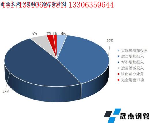 13、样本企业未来一段时间的投资计划:企业大规模增加投入的企业占比3.37%;适当增加投入的企业占比39.33%;暂不增加投入的企业占比48.31%;适当缩减投入的企业占比5.62%;退出部分业务的企业占比2.25%;完全退出市场的企业占比1.12%。