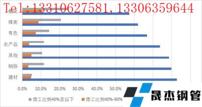 从不同行业的停工比例来看,钢铁、建材由于季节性生产和消费特征明显,停工比例达到80%的企业数量明显高于其他行业,且较去年相比,钢铁、建材行业停工比例达到80%及以上企业数量占比分别提高3.4和5.9个百分点。