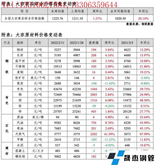 免责声明:本网站(山东聊城91视频官网下载无缝钢管厂www.hujuzx.com)刊载的“MRI:大宗原材料价格周报(2月7日-2月11日)”等均源于网络,版权归原作者所有,且仅代表原作者观点,本文所载信息仅供参考。转载仅为学习与交流之目的,如无意中侵犯您的合法权益,请及时联系删除。本网站刊登此篇文章并不意味着本站赞同其观点或证实其内容的真实性,91视频官网下载不对其科学性、严肃性等作任何形式的保证。如果侵犯了您的版权,请尽快联系91视频官网下载予以撤销,谢谢合作!