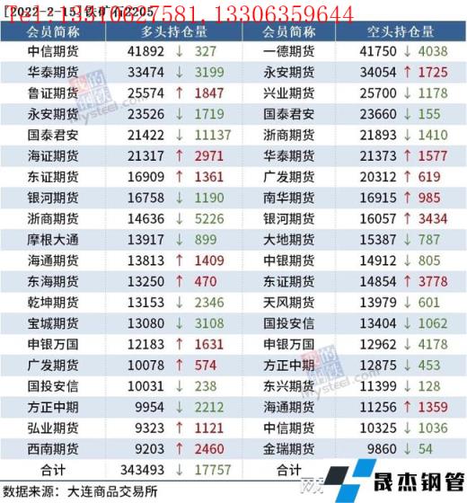 截至2月15日收盘,螺纹钢2205收4728元/吨,跌2.76%;热卷2205收4843元/吨,跌2.69%;铁矿石2205收699元/吨,跌9.98%。