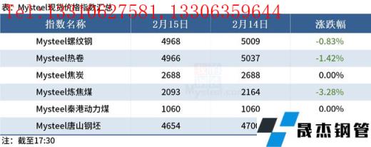 ◎ 2月15日唐山迁安地区普方坯资源出厂含税下调50,报4650元。