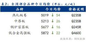 今日全国部分品种均价表现较弱,整体跌幅为16~54元/吨。
