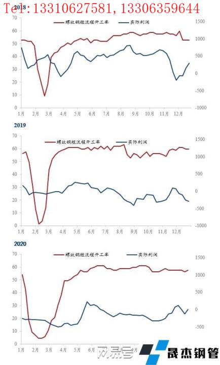 在去除春节、年末季节性停工以及赶工的扰动之后,实际利润与电炉开工率的相关性检验结果显示, 2018年两组数据的相关性在0.7以上,2019年的相关性在0.66左右,2020年在0.6左右,两组数据之间的关系较为密切,存在一定的相互影响。而另一方面,在前文中的假设条件之下,通过以实际利润为自变量的回归分析,结果表示在2018年3~11月的实际利润对电弧炉无缝91视频在免费线观看钢管厂家开工率有40%左右的解释能力,2019年4~11月有近50%的解释能力,2020年4~11月实际利润的解释能力稍弱,但依然存在一定性的影响。