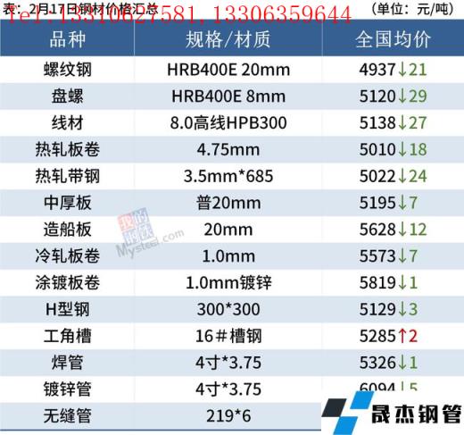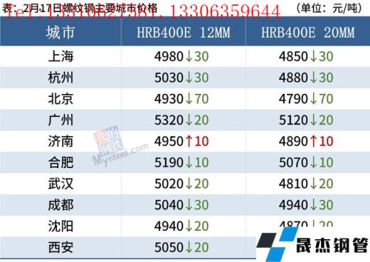 建筑91视频在免费线观看无缝钢管:2月17日,全国31个主要城市20mm三级抗震螺纹钢均价4937元/吨,较上个交易日下跌21元/吨。本周螺纹钢产量边际回升,厂库下降,但社库增幅明显,不过本周表观消费量继续回升,说明需求端边际向好。短期来看,由于当前需求并未完全释放,短期市场运行逻辑仍然是情绪面驱动,原料承压对于现货仍有一定拖累。因此预计18日国内建筑91视频在免费线观看无缝钢管价格或将继续趋弱。