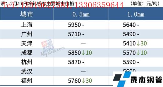 冷轧板卷:2月17日,全国24个主要城市1.0mm冷卷均价5573元/吨,较上个交易日下跌7元/吨。今日黑色系期货盘面整体震荡偏弱运行,市场心态下滑,近两日现货市场价格均陆续回落,再加上市场“买涨不买跌”的情绪居高不下,今日整体成交一般。库存方面,据不完全统计,现冷轧无缝91视频在免费线观看钢管厂家库存40.94万吨,周环比减少2.77万吨,社会库存142.03万吨,周环比增加2.86万吨,周消费量80.71万吨,环比增加13.02万吨。综合来看,故预计18日国内冷轧板卷价格或将稳中偏弱运行。