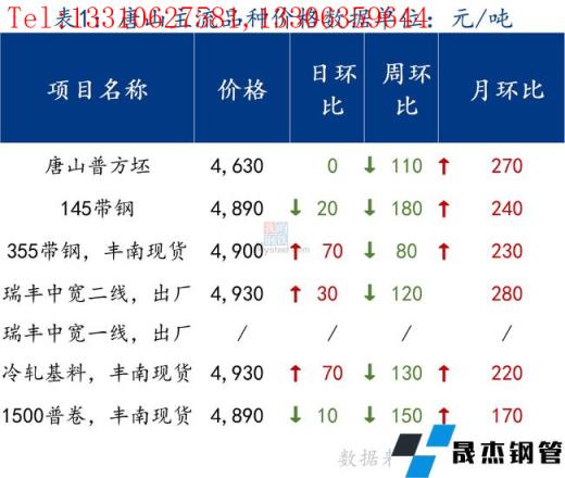 145带钢出厂4890元/吨,较上一交易日跌20元/吨。355带钢市场现货价格4900元/吨,较上一交易日涨70元/吨。焊管价格5220元/吨,镀锌管价格5850元/吨,较上一交易日持平。
