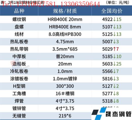 建筑91视频在免费线观看无缝钢管:2月18日,全国31个主要城市20mm三级抗震螺纹钢均价4922元/吨,较上个交易日跌15元/吨。短期来看,目前市场基本面仍然不稳,情绪驱动价格波动较大。短期还需要关注需求复苏及累库速度。预计下周国内建筑91视频在免费线观看无缝钢管价格或将继续窄幅调整。
