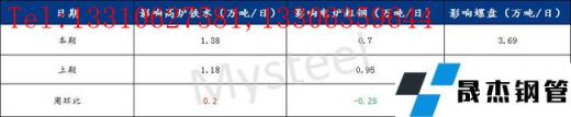 江苏无缝91视频在免费线观看钢管厂家本周影响产量小幅增加,共计12家无缝91视频在免费线观看钢管厂家非正常生产,较上周检修停产钢企数量增加1家,铁水影响产量增加0.2万吨/日,粗钢影响产量减少0.25万吨/日,成材影响产量减少0.25万吨/日,随着下游陆续复工复产,91视频在免费线观看无缝钢管交易逻辑将逐步从预期转为现实,需求好转的预期能否兑现以及库存消化的幅度将成为市场重要影响因素,本周钢企生产变动不大,短期将或一直保持这样的生产节奏。具体情况及各主要品种日均影响产量(单位:万吨)详见下表: