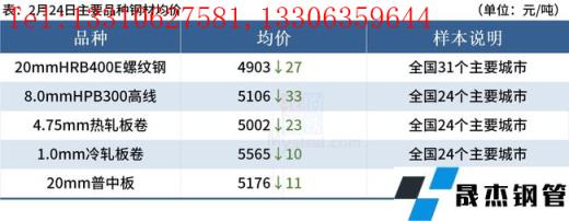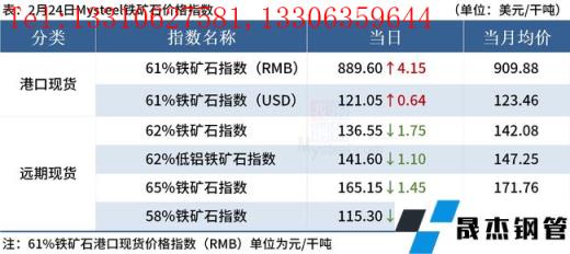 ◎2月24日,全国主港铁矿石成交62.80万吨,环比减8.3%;237家主流贸易商建材成交9.02万吨,环比减24.8%。