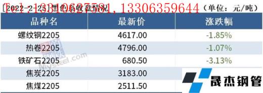 截至2月25日收盘,螺纹钢2205收4617元/吨,跌1.85%;热卷2205收4796元/吨,跌1.07%;铁矿石2205收680.5元/吨,跌3.13%。
