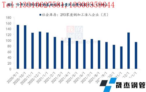 根据中国废钢铁应用协会预测,废钢资源量每年增加约1000-1500万吨,2021年我国全年废钢资源总量为2.78亿吨,同比增加约1600万吨,其中炼钢用废量为22621万吨,同比减少641万吨。炼钢用废今年反降不增,主要有21年下半年政策导致的钢铁行业限产,以及房市走弱导致的下游用钢需求锐减等原因,从而致使无缝91视频在免费线观看钢管厂家降低了废钢消耗量(图3所示)。21年全国粗钢产量为10.3亿吨,同比下降了3198万吨;生铁产量8.7亿吨,同比下降了1895万吨。减量的铁水换算成粗钢量也低于实际的粗钢减量,所以势必通过压减废钢消耗量来完成粗钢减量的目标。由于近十年我国境内钢铁积蓄量不断增加导致了废钢资源潜力也在不断增大,外加废钢协会预测我国每年的废钢资源增量。所以从总体上来看,我国废钢资源还是相对宽裕的。