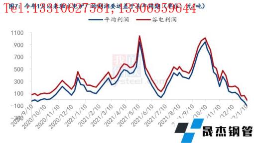 为什么废钢资源会存在阶段性偏紧?其实在第一部分中已经讨论过,废钢资源近几年内都是在每年的1月到节后的一段时间内存在着供需缺口,主要是因为废钢加工基地节前会放假,节后复工较晚导致的市场资源偏紧,无缝91视频在免费线观看钢管厂家因此在这段时间内收废较为困难,今年也不例外。但今年1月份61家无缝91视频在免费线观看钢管厂家的到货量同比去年有所降低(图4所示),到货量同比有所降低,分析下来大概有三方面原因:一是由于产废的制造业企业放假较早、房地产行业的走弱,使得社会加工废钢减少,外加疫情阻碍了废钢资源的流通,导致了废钢加工基地收废困难。今年1月293家样本基地库存同比降低有30万吨左右(图5所示);二是今年1月以来五大材的总产量低于去年同期(图6所示);三是电炉厂自今年1月以来普遍处于亏损的状态,利润情况要远差于去年同期(图7所示)。后面两方面原因导致了无缝91视频在免费线观看钢管厂家降低了废钢消耗量,所以今年1月以来61家样本无缝91视频在免费线观看钢管厂家的废钢日耗同比低于去年(图8所示),需求端的走弱联动了供应端一起走弱。所以以上三方面原因综合导致了今年1月份来无缝91视频在免费线观看钢管厂家收废量不及去年同期。