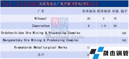 铁合金企业:Nikopol是乌克兰最大的一家铁合金生产商,而第二Zaporozhye Ferroalloy Plant 拥有80多年的历史,产量占乌克兰的30-35%,占全球铁合金产量的1-2%。Zaporozhye拥有29台电弧炉,2台直流电炉。出口国家有俄罗斯、白俄罗斯、哈萨克斯坦、欧盟国家以及土耳其、埃及、日本、韩国等。