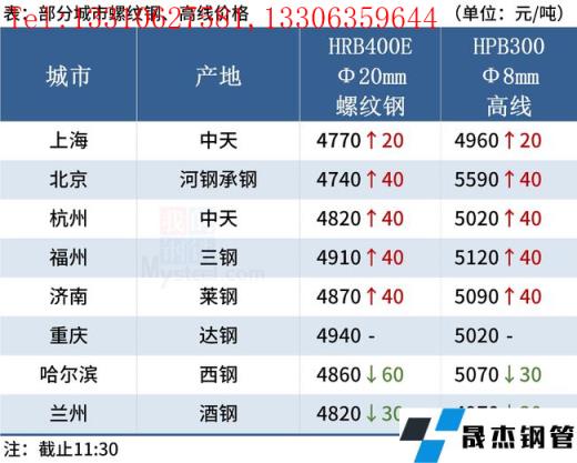 ◎上海:28日早盘建材市场价格整体上涨20。现螺纹4700-4740,西城抗震4740,其他4590-4650,兴鑫抗震4660,联鑫黄海抗震4670,盘螺4850-4960,高线亚新4710。(单位:元/吨)