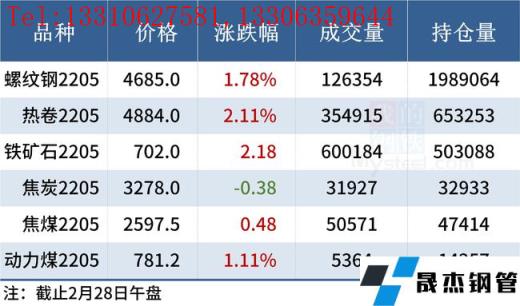 2022年02月28日午报:钢价多数上涨,黑色期货普遍走强