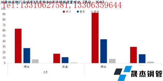 2、3月份川渝地区建筑91视频在免费线观看无缝钢管生产企业对四川市场计划投放122.57万吨,环比增加51.92%;对重庆市场计划投放60.5万吨,环比增加56.74%;对云南、贵州等地计划放10.6万吨,环比增加33.17%。