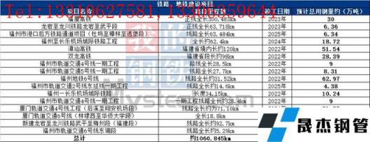 未来2-3年福建省铁路、地铁项目在建新建线路总长约1060.845公里,据不完全统计预计总用钢量约283.082万吨左右。
